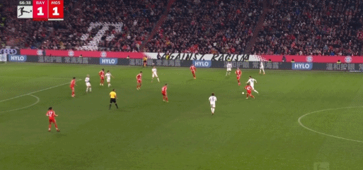 第29分钟,格纳布里送助攻,卡尔破门,拜仁1-0美因茨