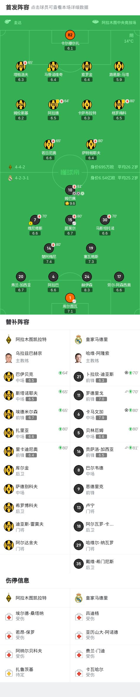 第52分钟,库尔图瓦送出助攻姆巴佩单刀轻巧挑射破门,皇马2-0领先