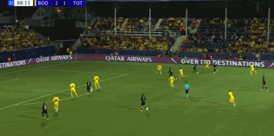 第53分钟,埃夫连助攻,海于格轻松兜射破门,博德闪耀1-0热刺