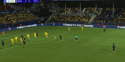 第68分钟,扳回一城,范德芬头球破门,博德闪耀2-1热刺