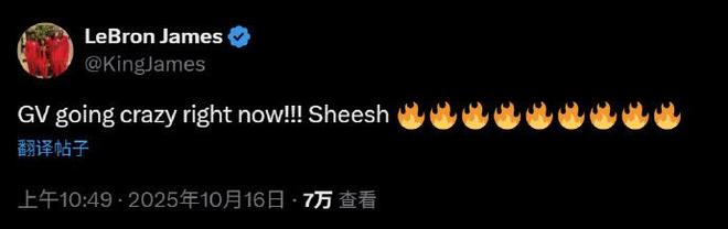 文森特的出色表现,让詹姆斯也是通过社媒点赞表示:“GV(文森特)要疯了!嘶~火火火火火火火火火。”