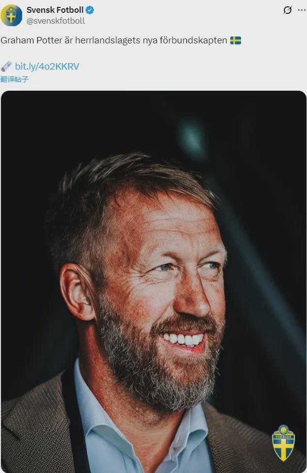 官方:瑞典宣布任命波特为主帅。